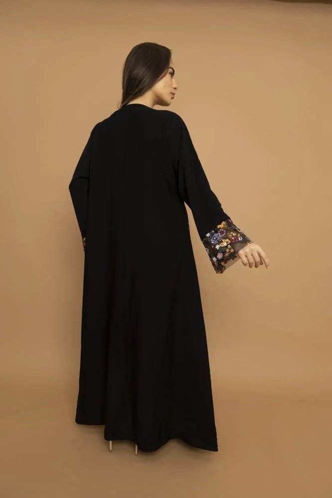 Abaya embroidered with colorful threads and elegant travel design