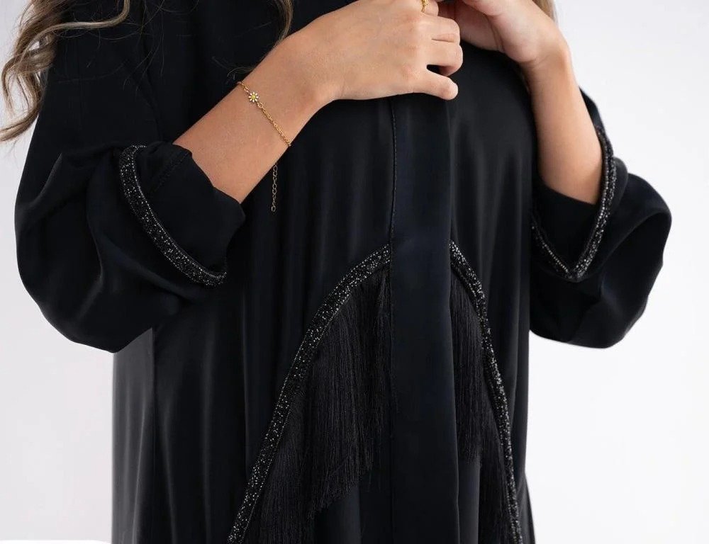 Be the first to review “Beaded abaya with luxurious fringes, elegant evening design” Cancel reply