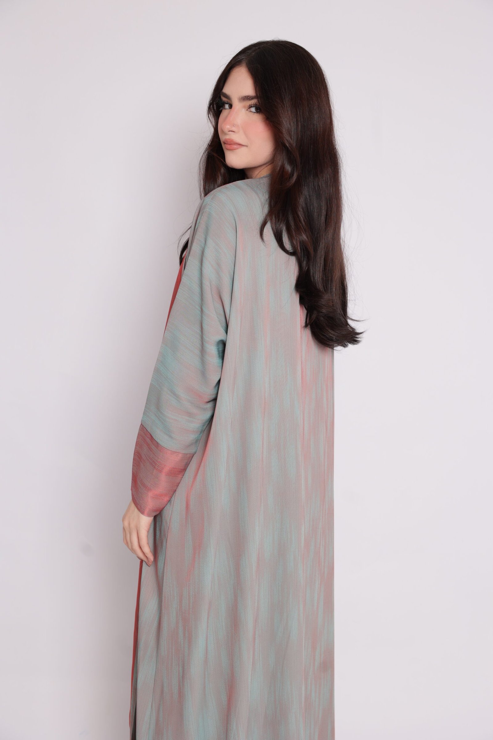 A colorful travel abaya that combines elegance and comfort with a soft crepe material
