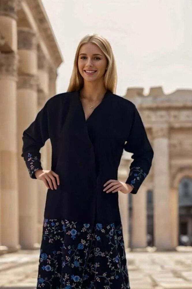 عباية مطرزة كحلي داكن بخامة الكريب الراقي