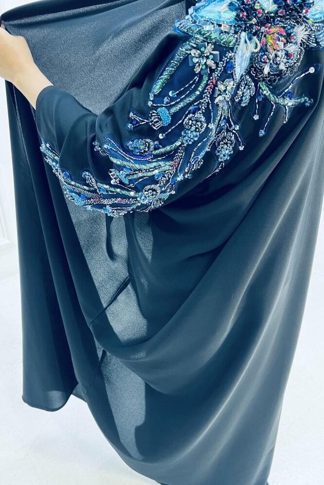 ما يميز هذه العباية حقاً هو التطريز اليدوي المتقن: